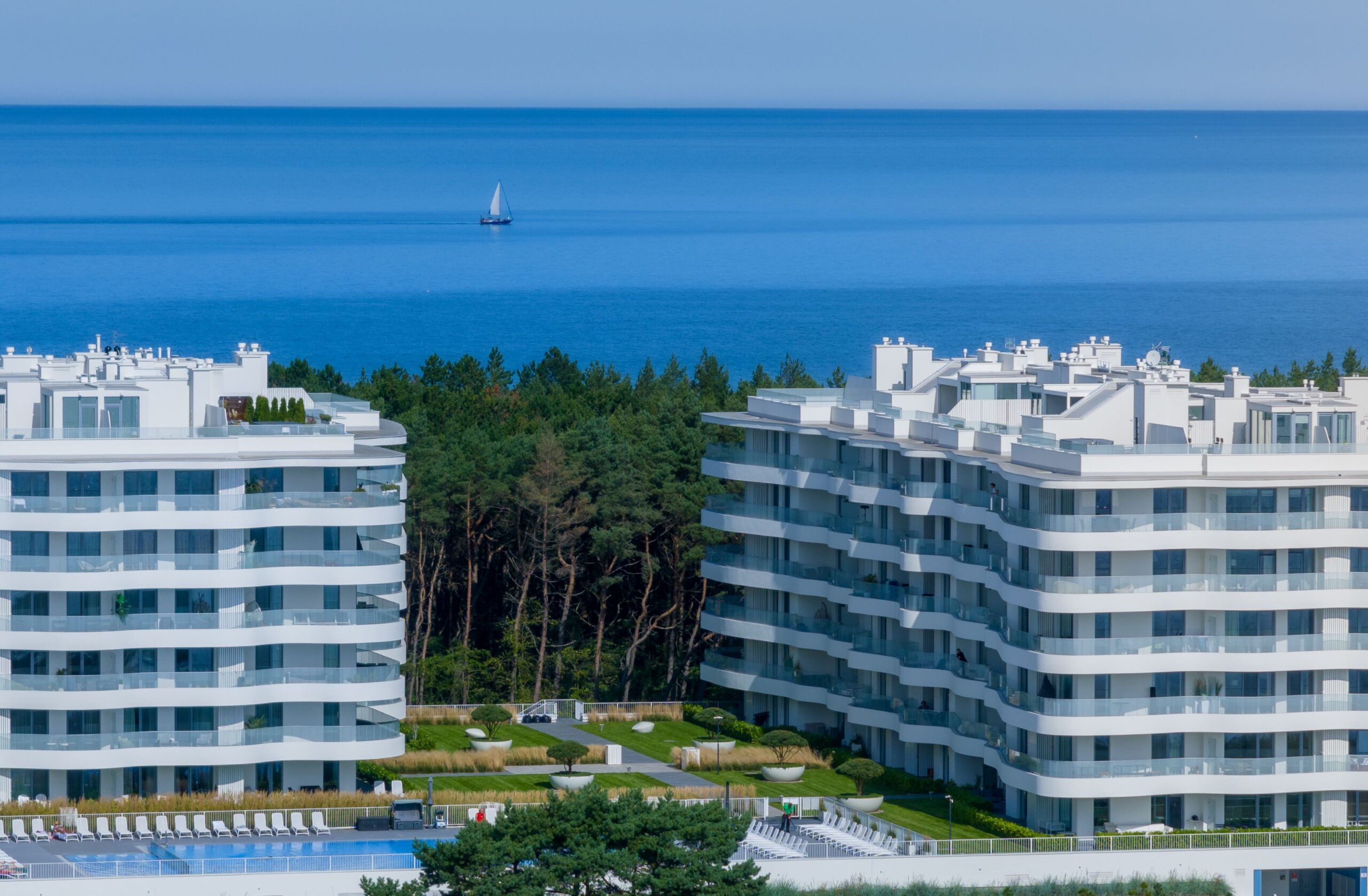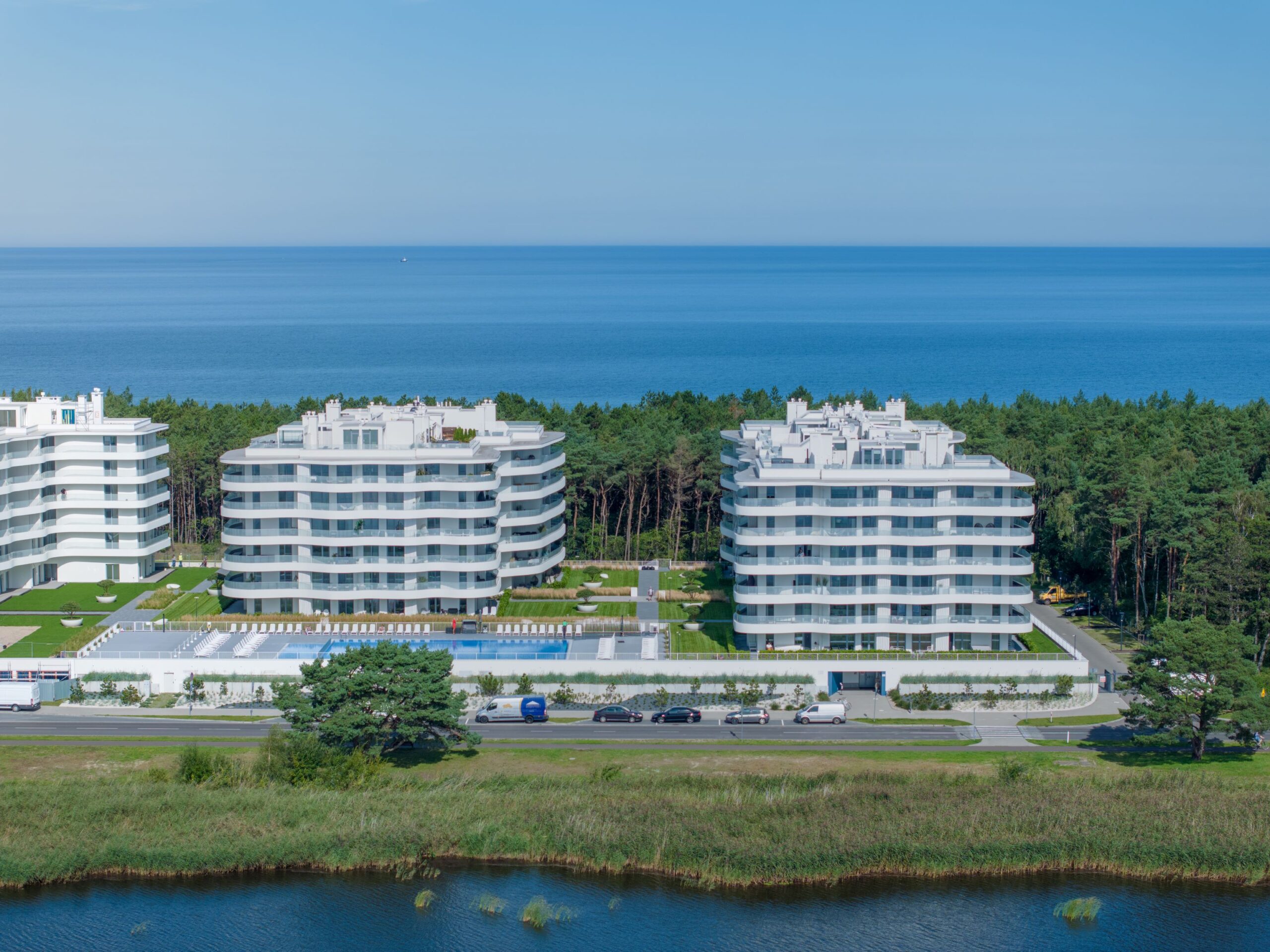 Luksusowe Apartamenty w otoczeniu natury z prywatnym wejściem na plażę. W obiekcie dostępne liczne udogodnienia zarówno dla starszych jak i dla najmłodszych gości. Z trzech stron sosnowy las otacza białe apartamentowce a od południa wzrok cieszy rozległa tafla jeziora. Miejsce przyjazne rodzinom ze względu na bliskość ścieżek leśnych i szerokiej plaży.